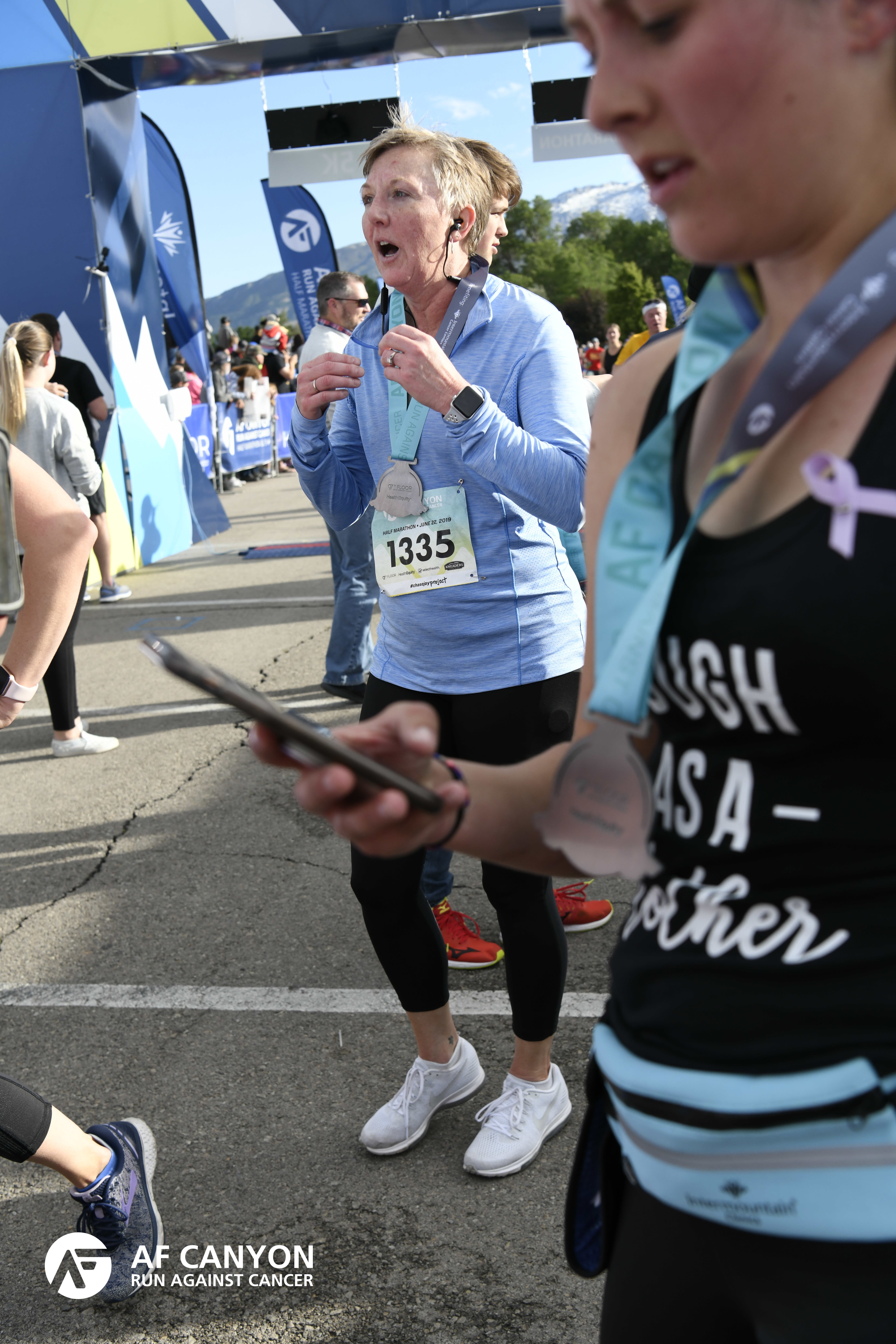 | Finish | 13.1 | 1:59:25 | 9:06/miles | 6.55 | 59:35 | 9:05/miles | 1000 | 576 F | 19 F50-54 |