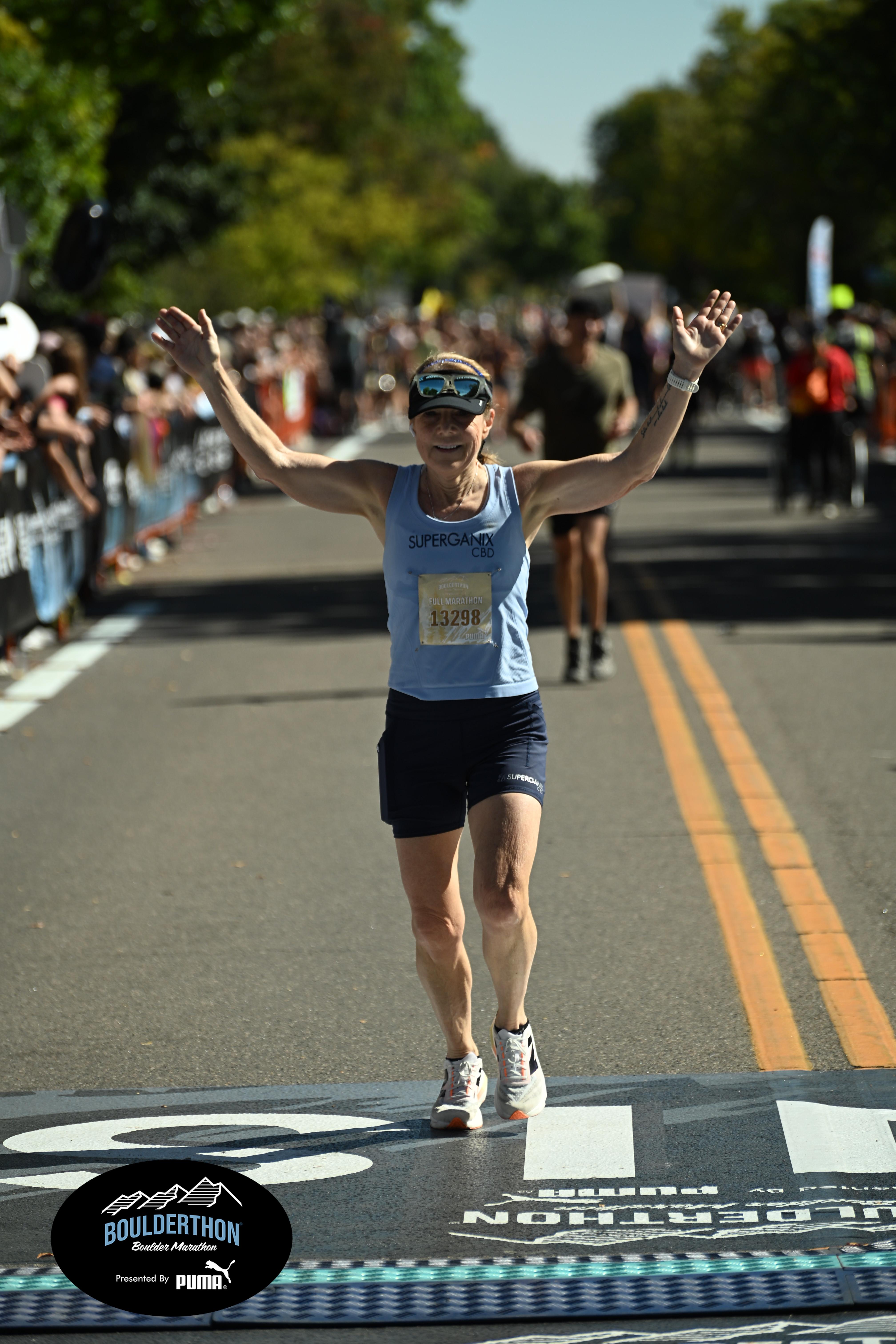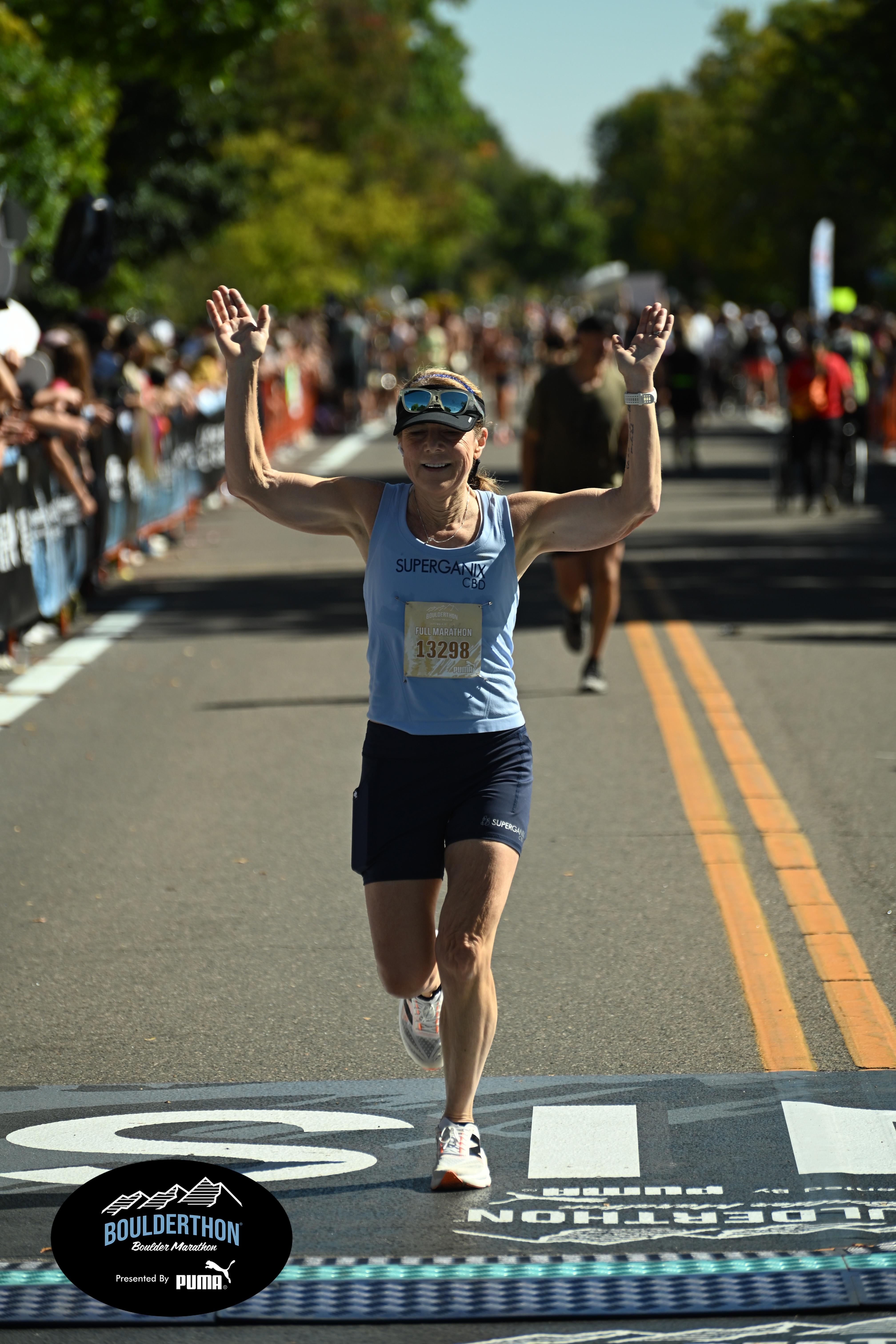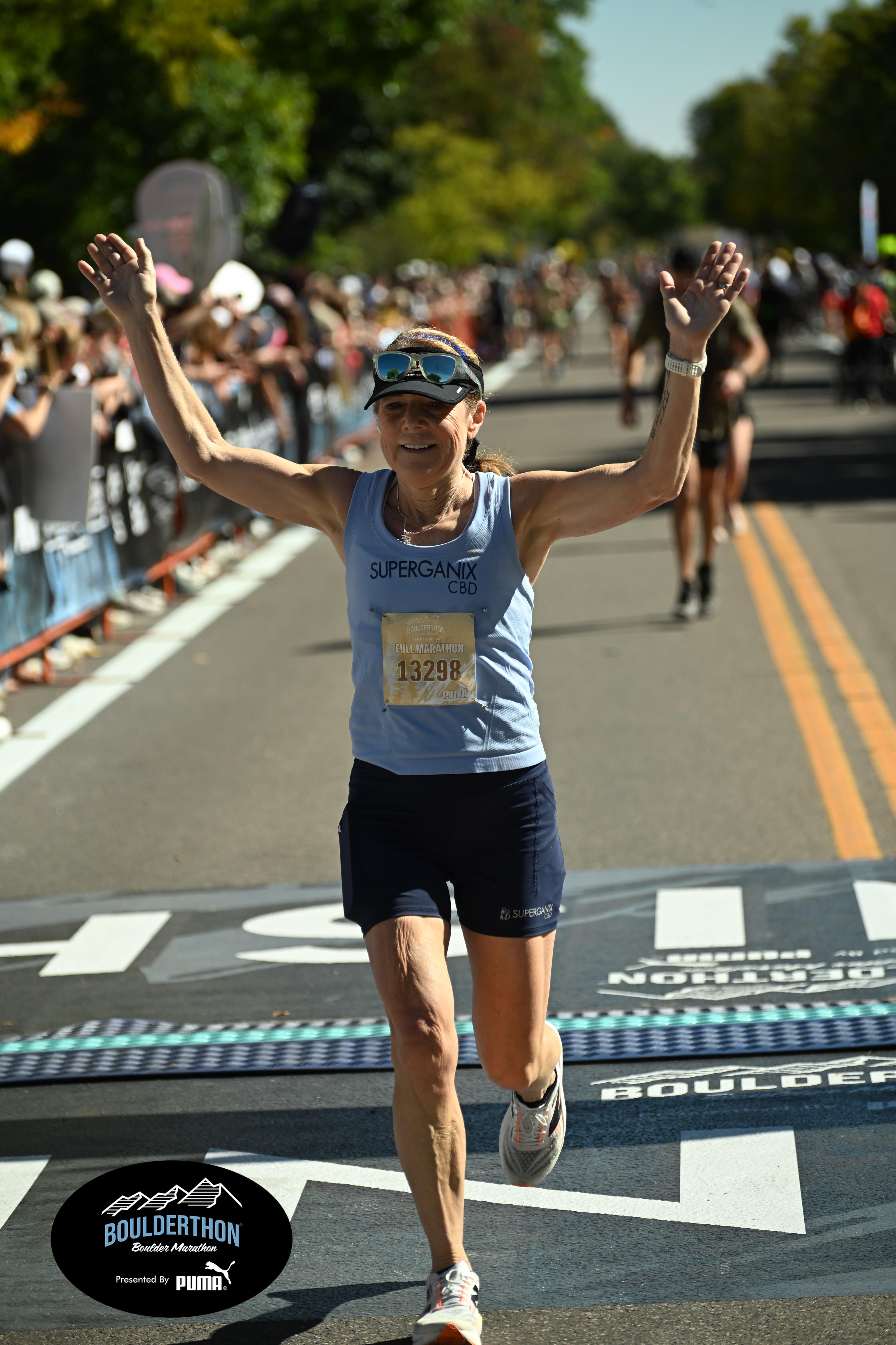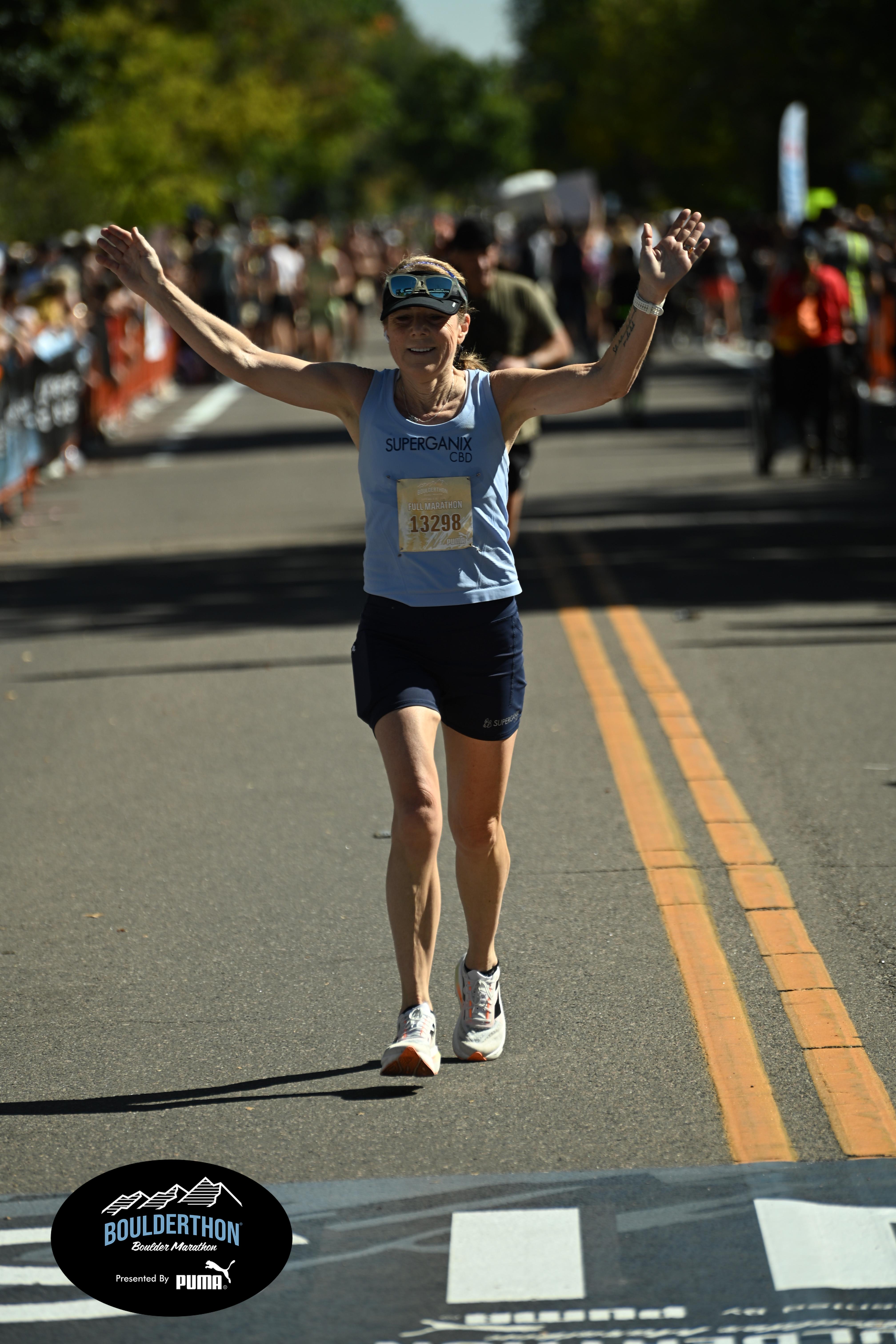 Date: Sept. 28, 2025 Participant: Laura Pierce #13298 Race: 2025 Boulderthon Marathon Distance: 26.2 miles Weather: Perfect running weather with temperatures in the 50's to 70's and nice cloud cover