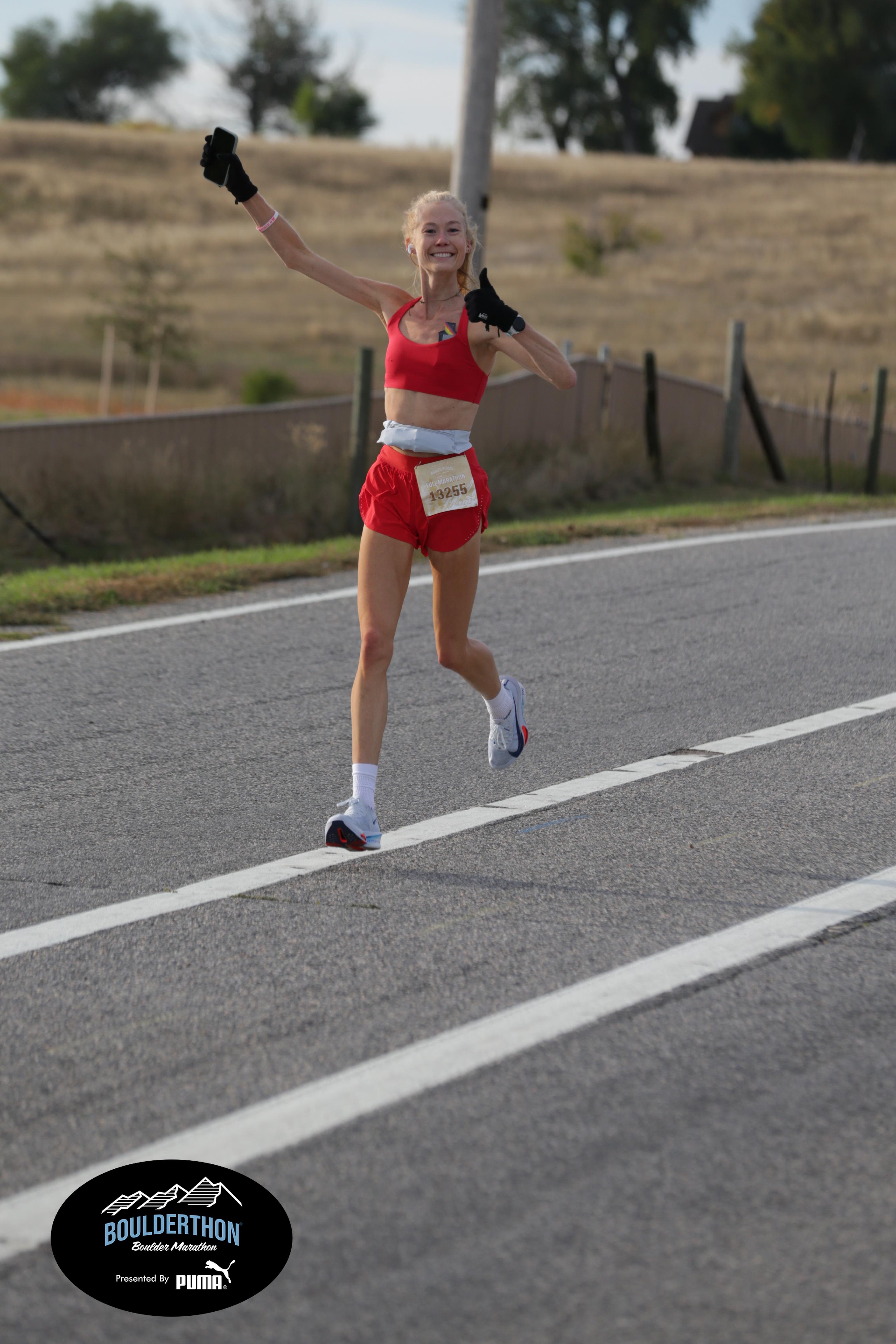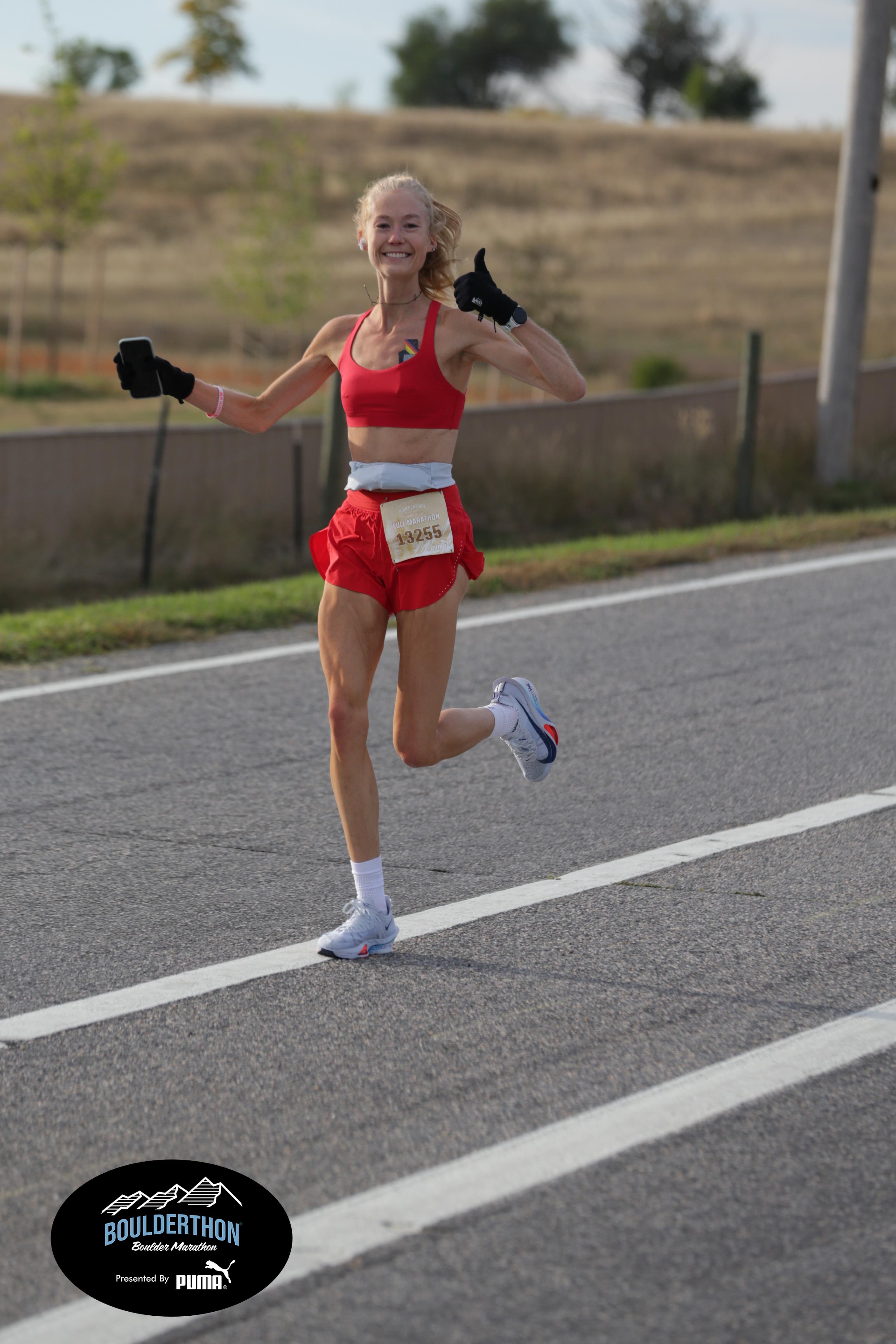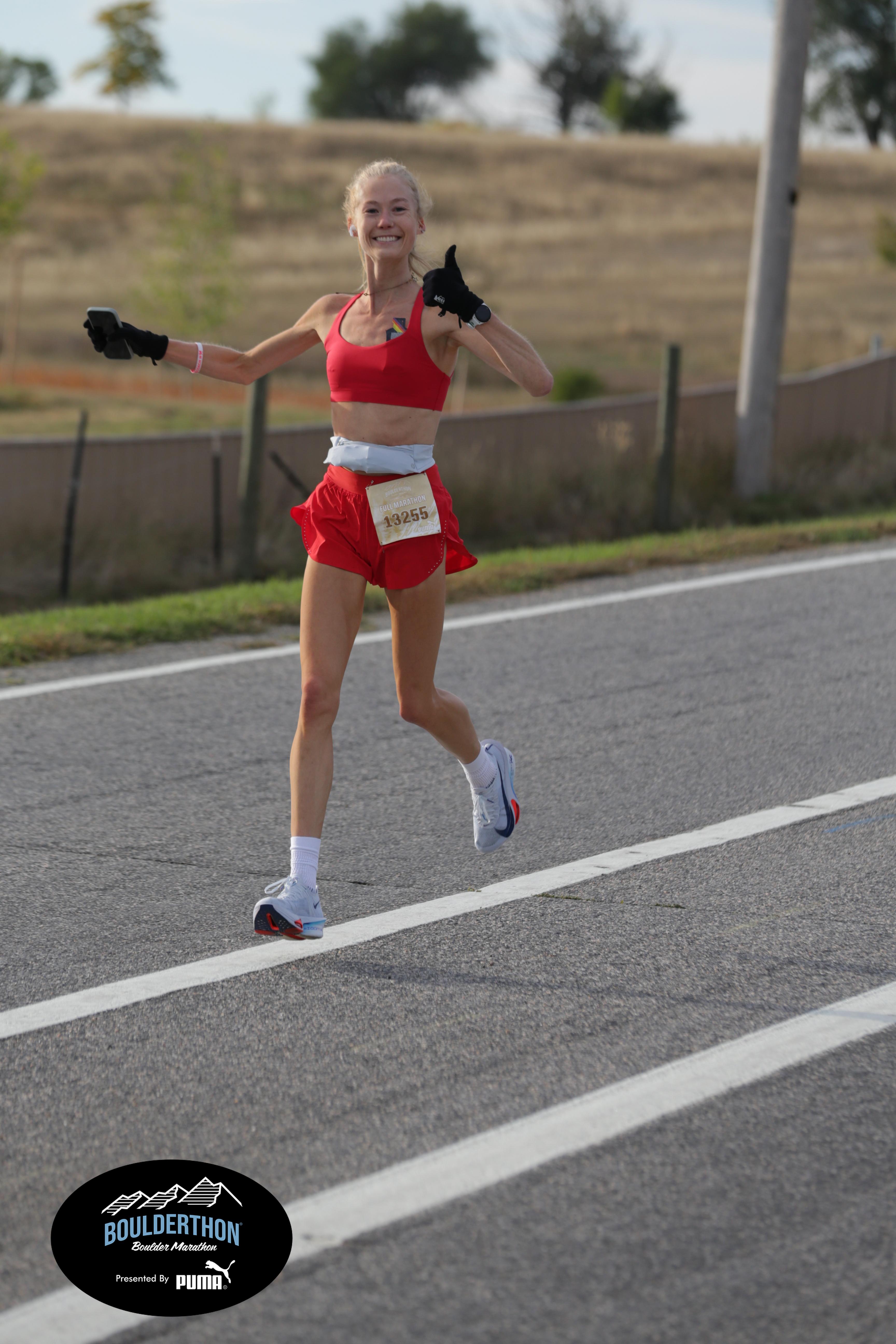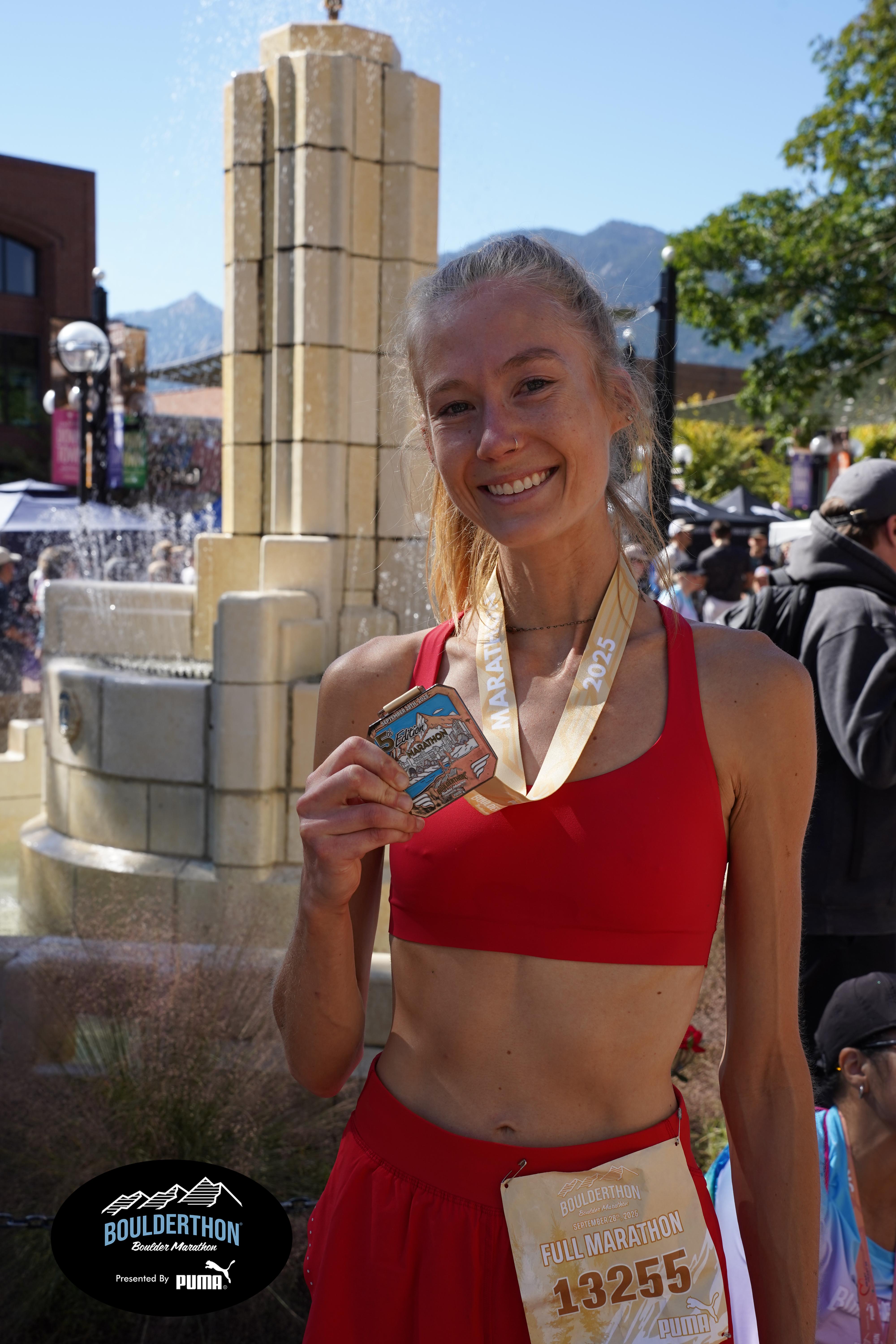 Date: Sept. 28, 2025 Participant: Caroline Kosmicki #13255 Race: 2025 Boulderthon Marathon Distance: 26.2 miles Weather: Perfect running weather with temperatures in the 50's to 70's and nice cloud cover