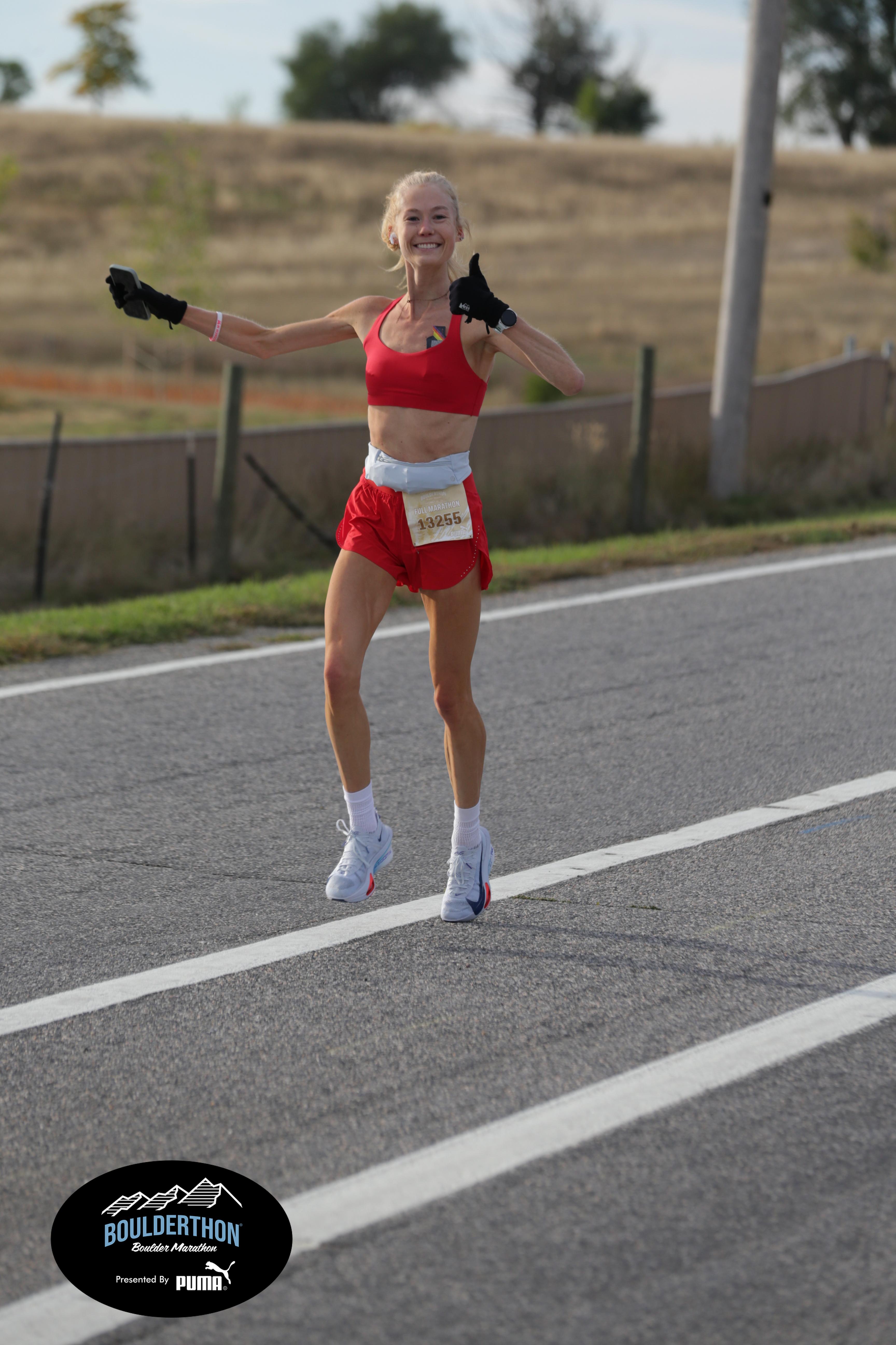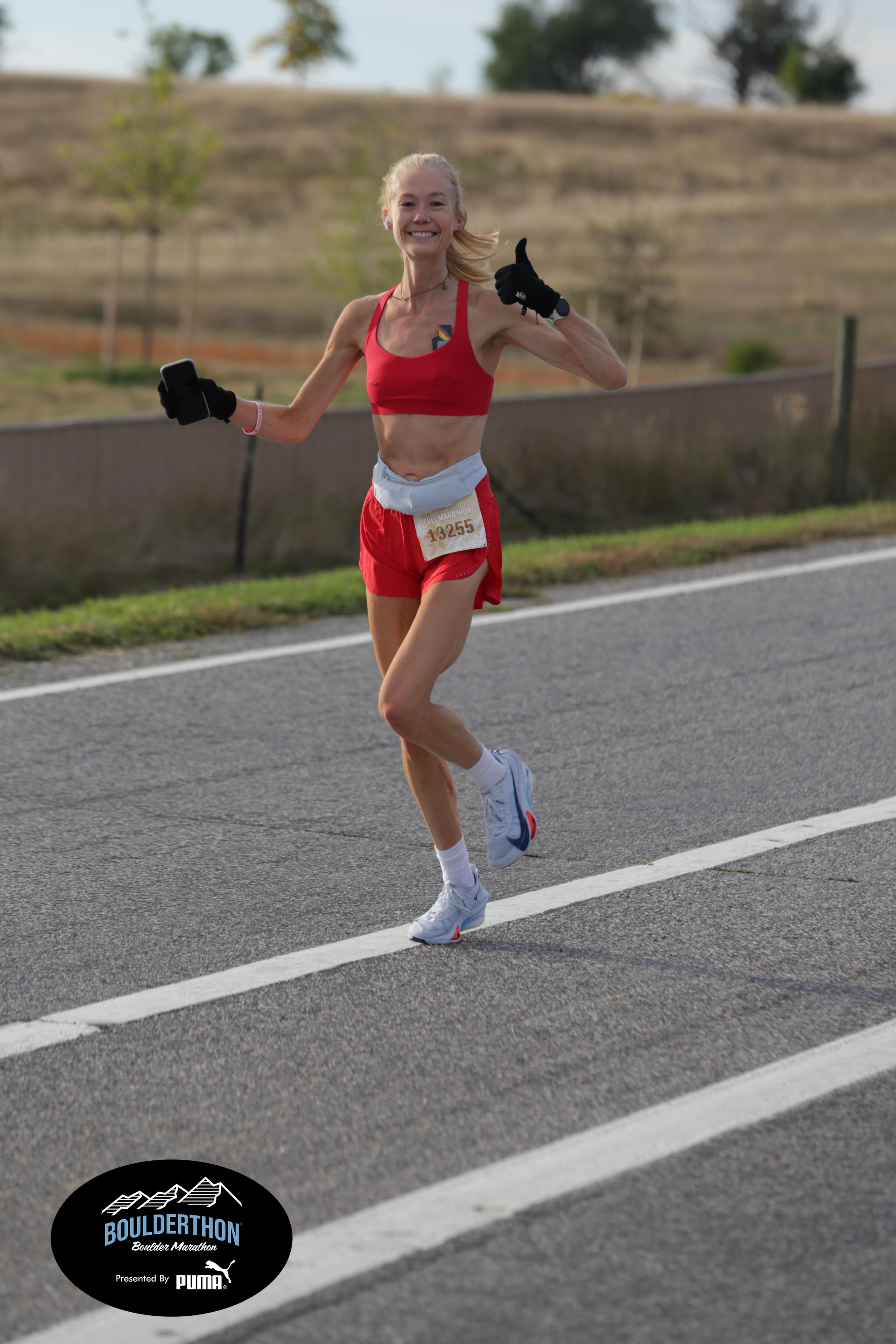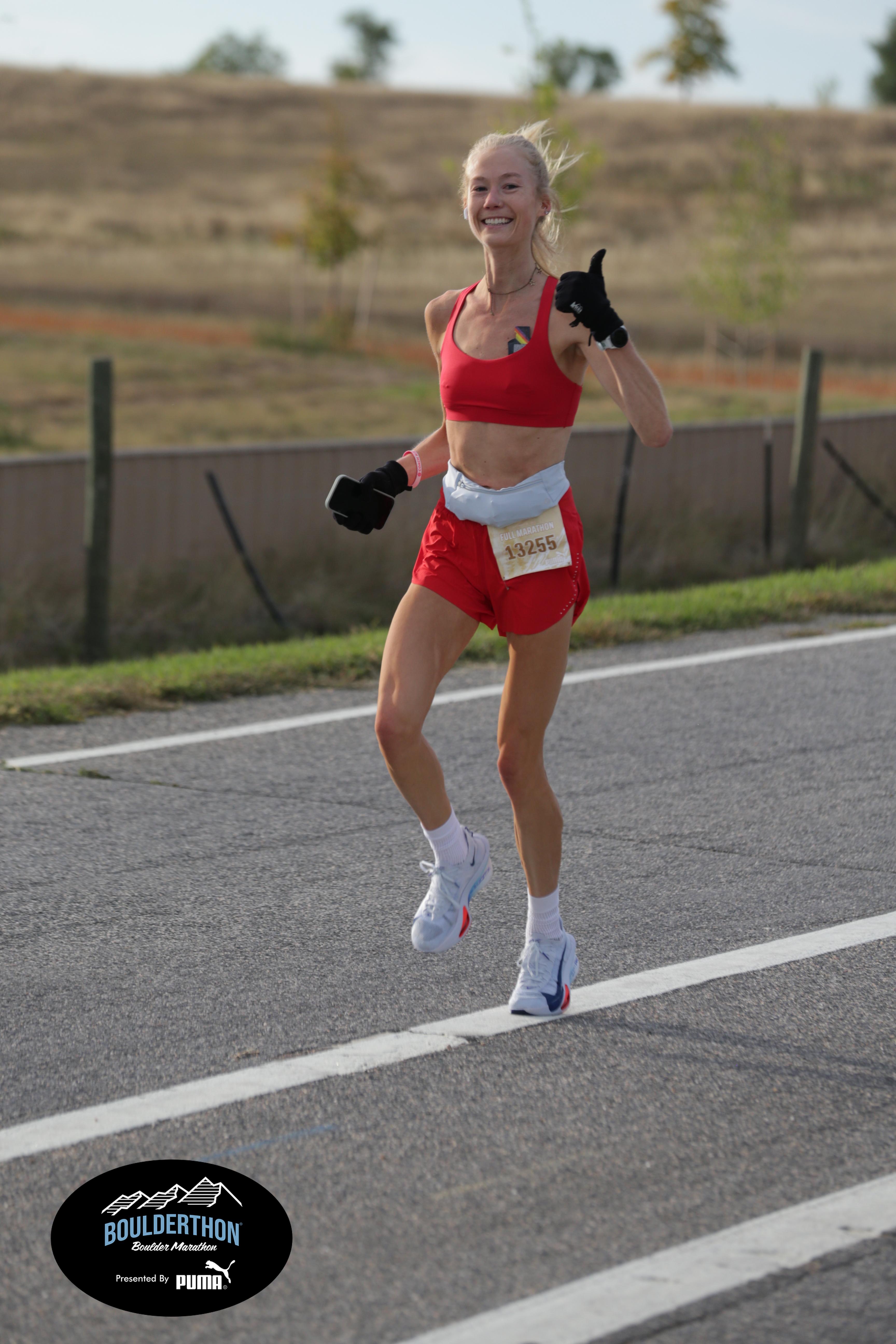 Date: Sept. 28, 2025 Participant: Caroline Kosmicki #13255 Race: 2025 Boulderthon Marathon Distance: 26.2 miles Weather: Perfect running weather with temperatures in the 50's to 70's and nice cloud cover