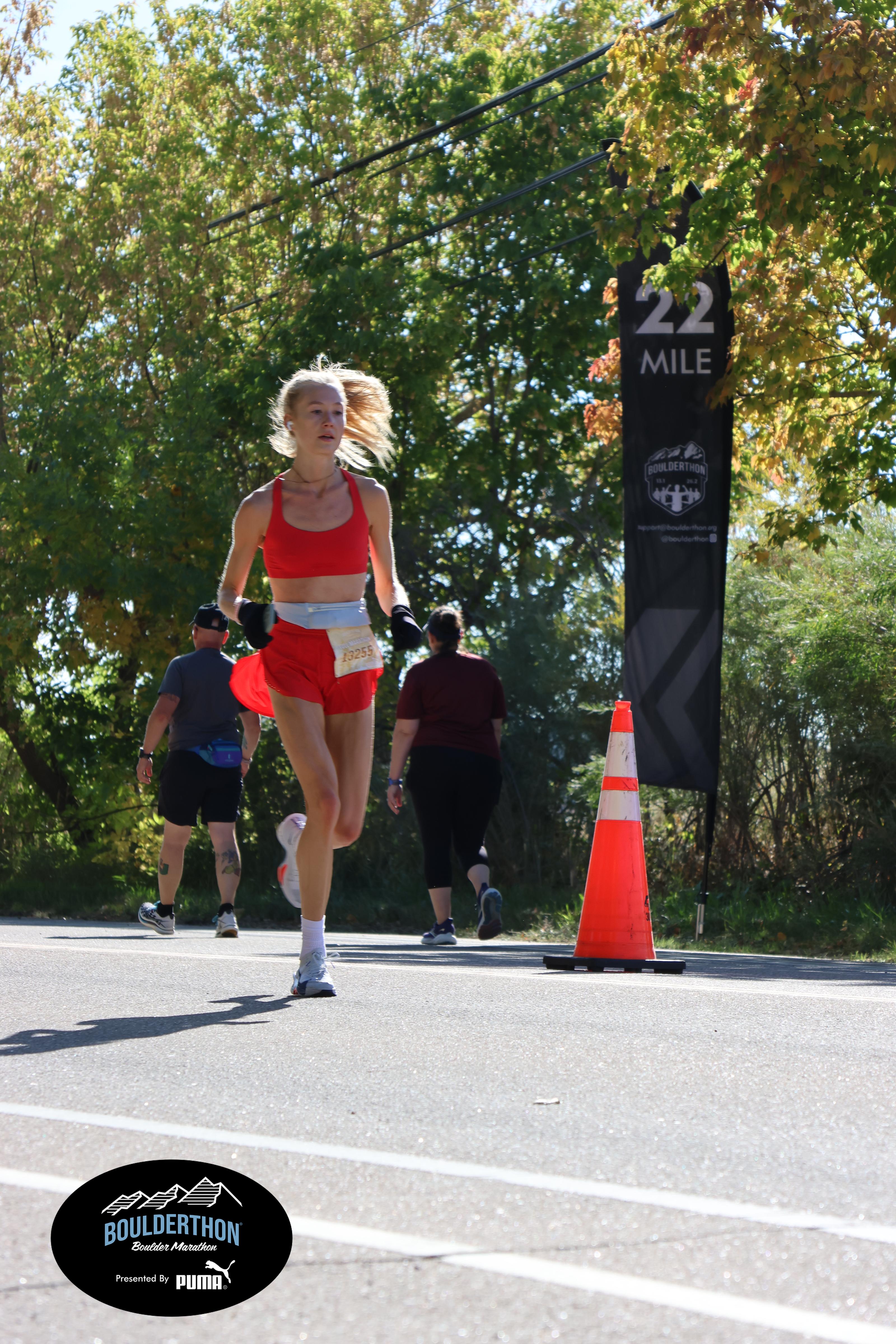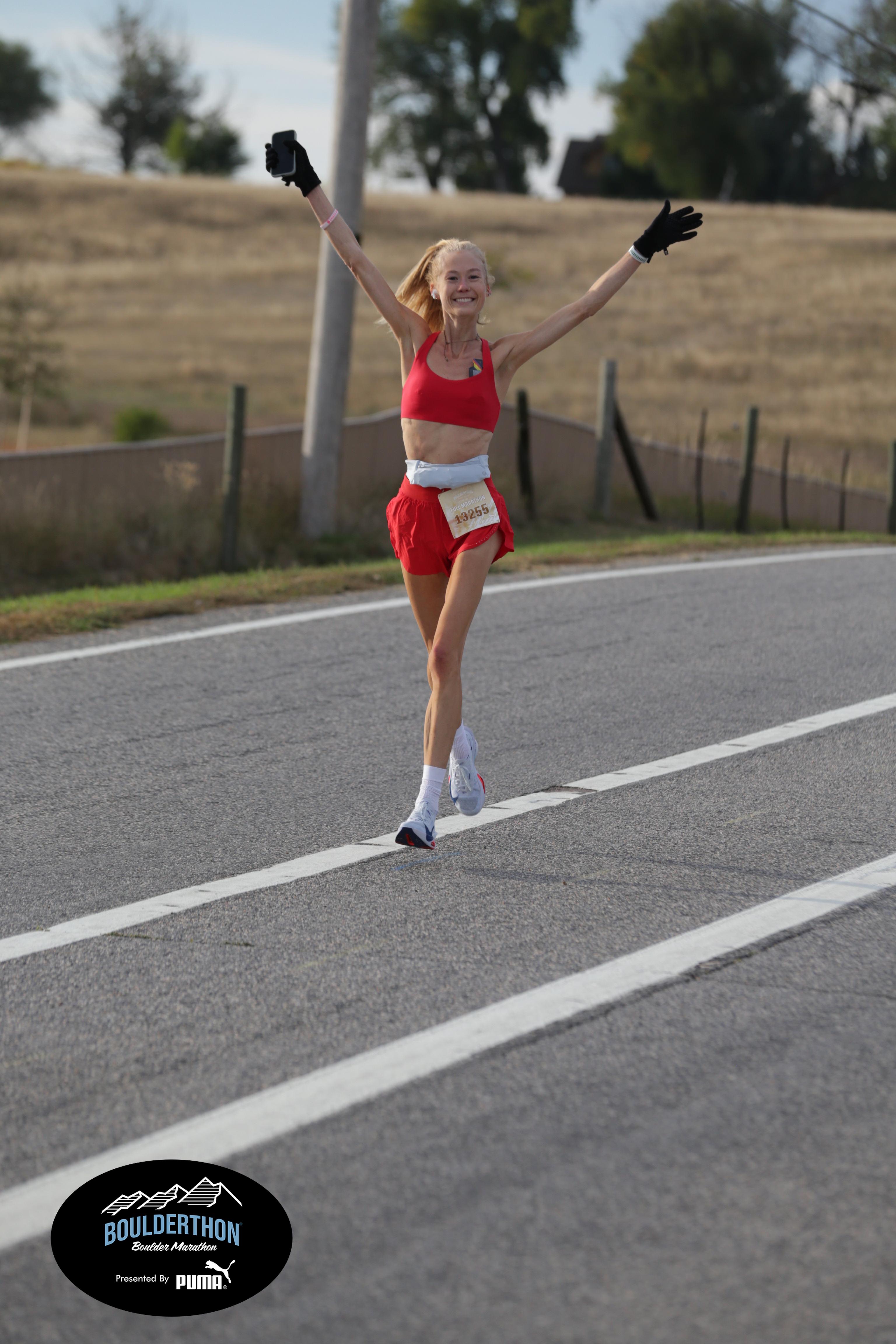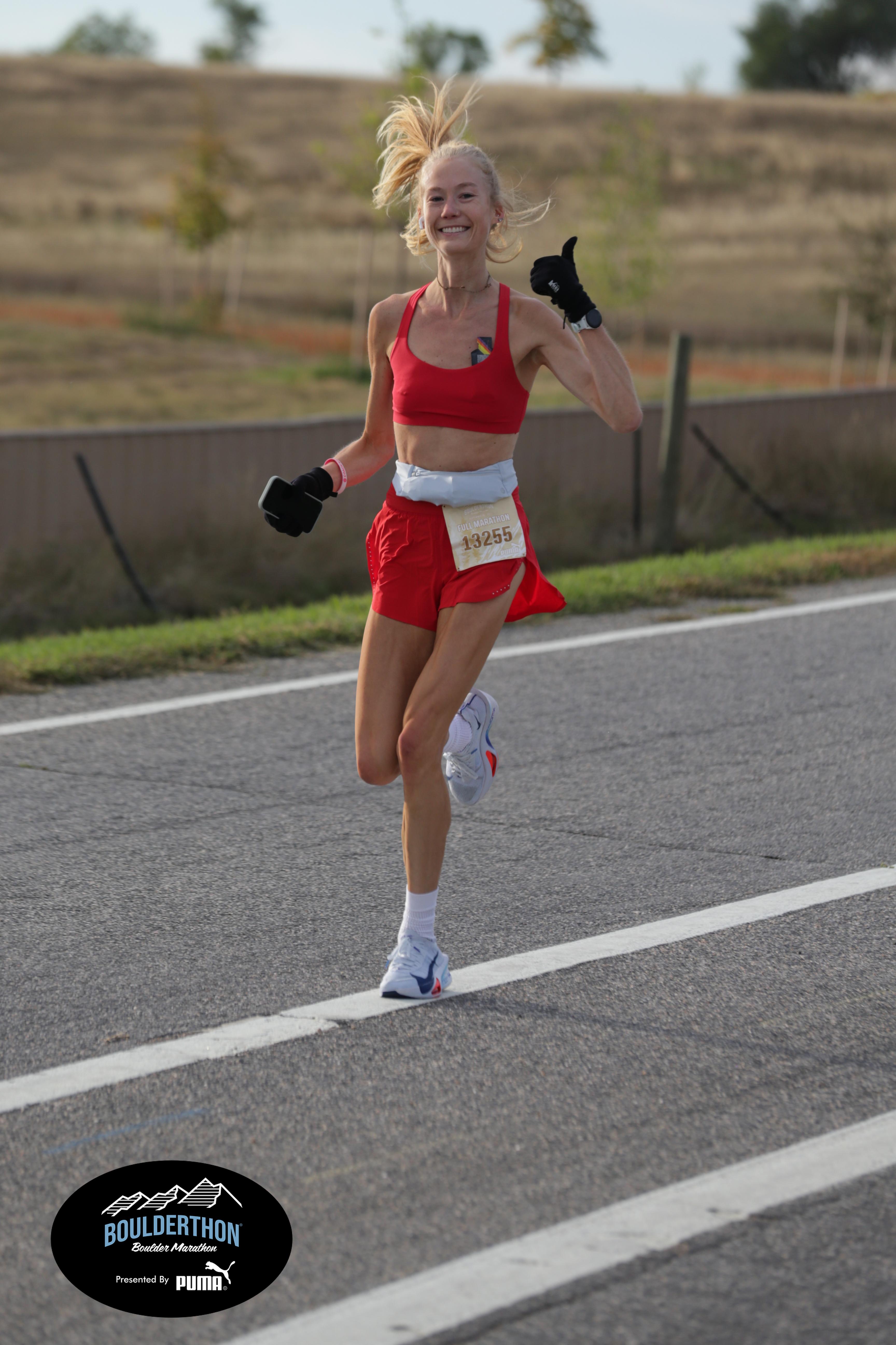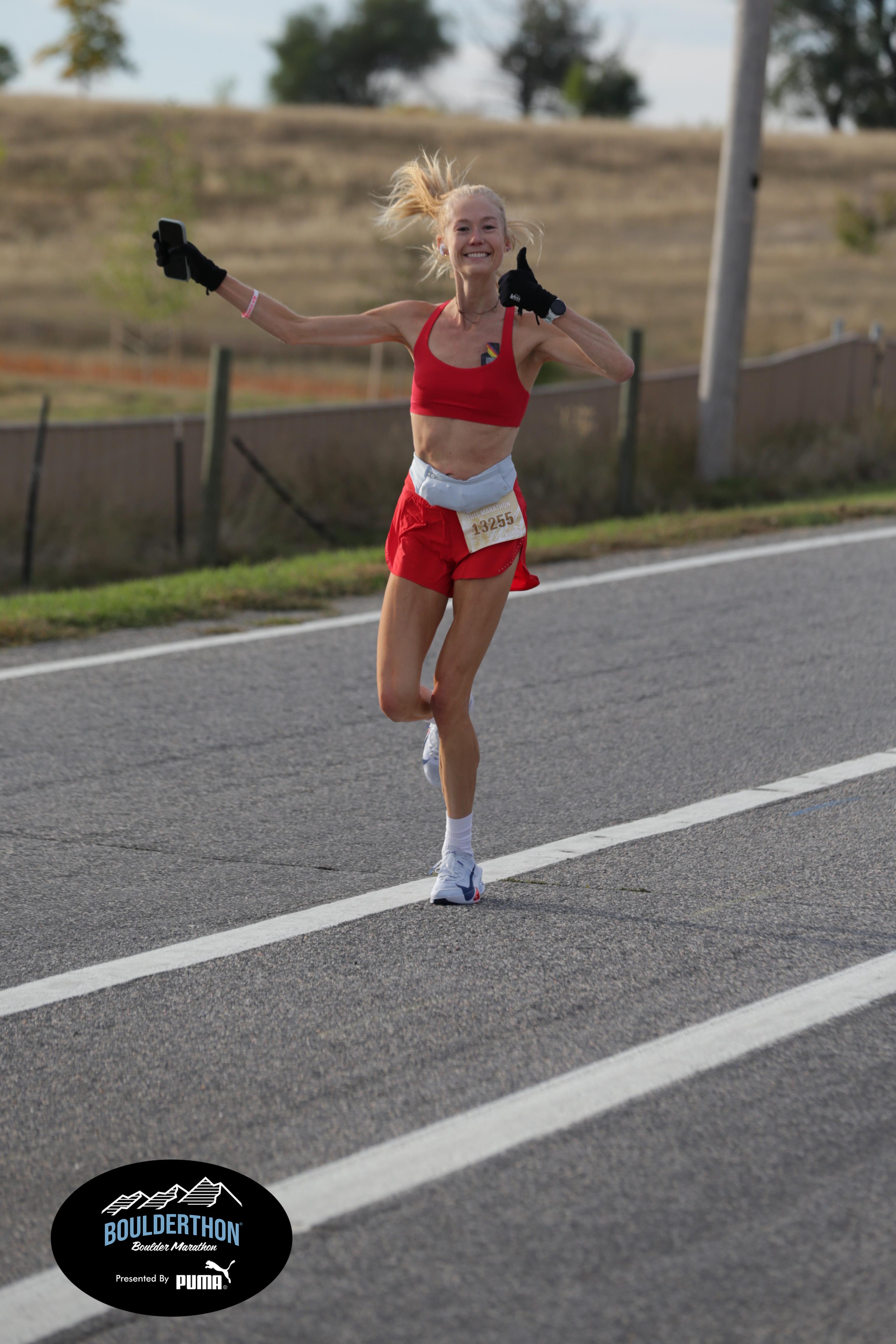 Date: Sept. 28, 2025 Participant: Caroline Kosmicki #13255 Race: 2025 Boulderthon Marathon Distance: 26.2 miles Weather: Perfect running weather with temperatures in the 50's to 70's and nice cloud cover