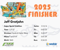 Bike | 12.25 | 1:00:54 | 12.1 mph | 12.0 | 43:17 | 16.6 mph | 38 | 24 M | 9 Friends & Family Wave |