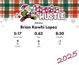 | Finish | 0.62 | 5:17 | 8:30/miles | 0.62 | 5:17 | 8:30/miles | 11 | 7 M | |